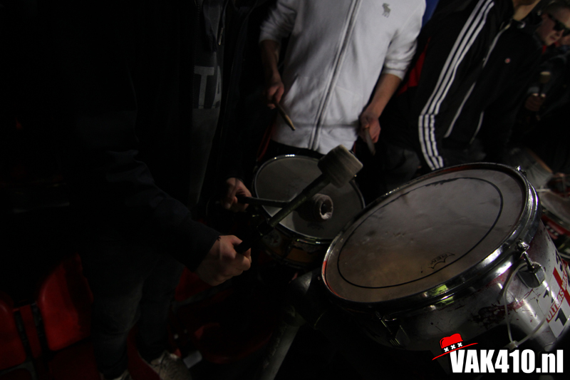 Zodra het metershoge doek naar beneden gaat is het tijd voor chaos. De lijn die is ingezet met AZ thuis kent vandaag zijn vervolg. Opnieuw staan er jongens bij 424 en wordt er 90 minuten lang gevlagd. De sfeer is uitstekend, diverse keren gaat een song goed hard. Ook op het veld gaat het goed. In tegenstelling tot afgelopen weken waar het moeizaam ging en soms met wat gelukt, knokt Ajax zich vandaag terug na een achterstand.