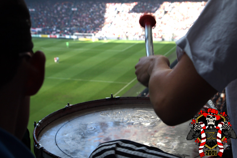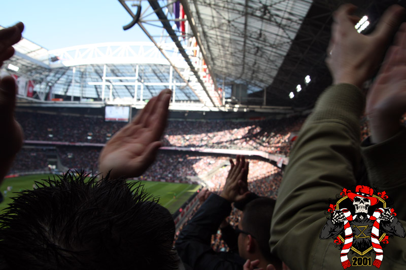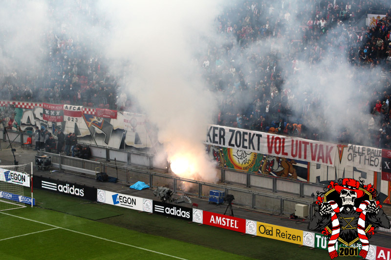 Jaarlijks vinden er rondom de Klassieker vaste rituelen plaats: bezoek aan de laatste training en de nacht ‘voor’. Dit jaar is op aangeven van Frank de Boer de laatste training besloten afgewerkt, dus dat ritueel ging niet door. Vroeg in de avond werd er door een groep bij het honk verzameld, van alle kanten wordt er drank en eten aangereikt. Aangezien de tempraturen ’s nachts weer tegen het vriespunt liggen wordt er een vuurtje opgestookt. De smeris komt ook nog even kijken, 8 busjes sterk. Als gauw zagen ze dat het om een groep Ajax ging, in tegenstelling tot hun eerdere gedachte naar een groep van de andere club.