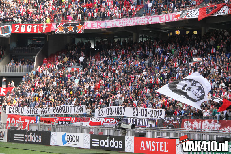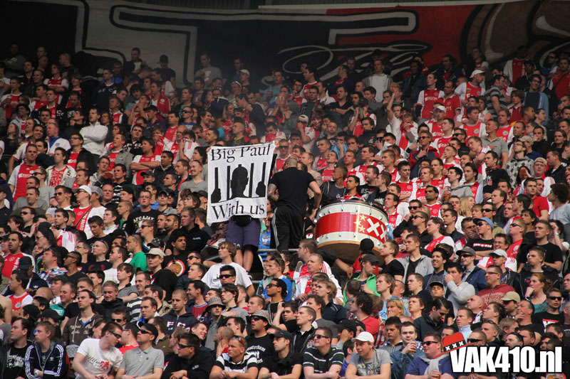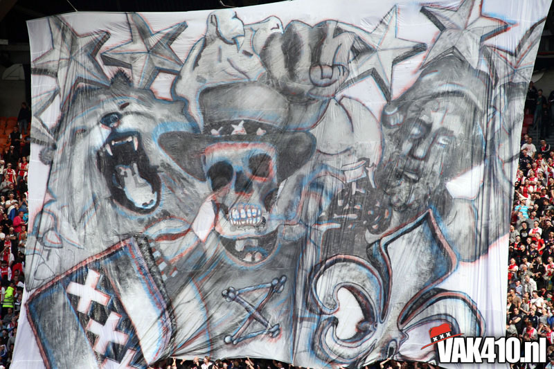 De magie van het doek werd overgebracht naar het veld en de Amsterdamse Zuid tribune. De Mokumse leeuw kwam in een ieder naar boven. De tribunes klokte, het stadion was 1. Er kon op de tribune en het veld dan ook niet meer verloren worden.