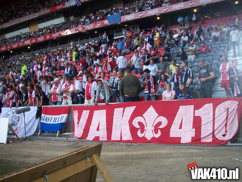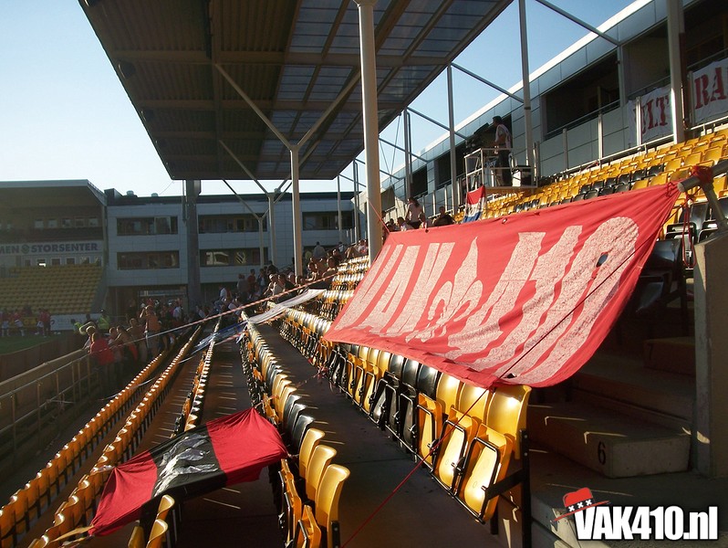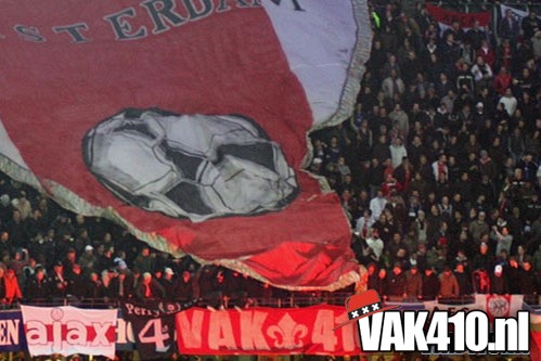 Vanaf nu heeft VAK410 dus een nieuw groepsdoek, de opvolger van het origineel maar exact hetzelfde. En om goed te beginnen zijn we met een groot deel van de groep met het nieuwe doek op de foto gegaan, voorafgaand aan de wedstrijd Ajax – Twente. Vanaf Vitesse uit zal het nieuwe groepsdoek dan ook overal met ons meereizen.