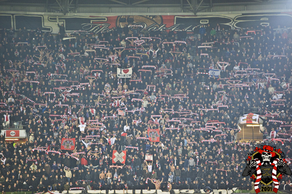Vandaag ging het gebeuren, er werd geschiedenis geschreven. Heel Europa had het vizier op onze Amsterdamse tribune. Voor een wedstrijd die om 20.45 uur zou beginnen zat het supportershome al erg vroeg vol. Het bier vloeide rijkelijk, de wiet en hasj werden vakkundig gesmoked. Op de toegangswegen van het stadion knalde de ene bom na de andere.