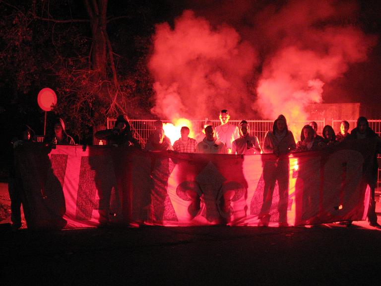Vanuit de binnenstad was er een goede treinverbinding met het stadion, 10 minuutjes treinen. De support van afgelopen zaterdagavond tegen Groningen begon zoals het geƫindigd was. Luidkeels ondersteunde de meegereisde groep de jongens op het veld. De eerste helft was leuk om naar te kijken, Ajax speelde goed maar ook Aston liet niet over zich heen lopen. Ajax maakte in het eerste kwartier het spel maar kwam op lullige wijze op een 1-0 achterstand. Ajax zette aan en kwam na een kwartiertje op gelijke hoogte. Thomas Vermaelen kopte raak uit een corner van Urby. Vlak voor rust ging Ajax uiterst ongelukkig de kleedkamer in, Aston Villa maakte de 2-1.