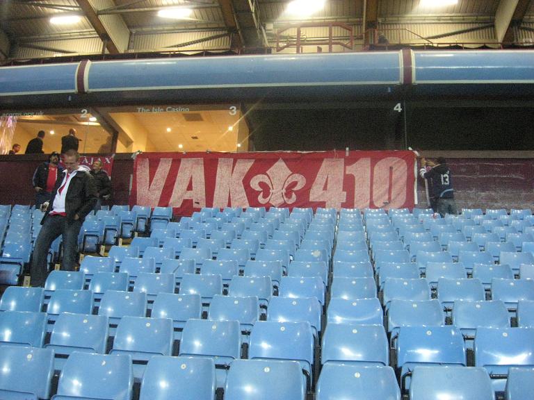 Een Europese uitwedstrijd in een niet Oostblokland, het kan. Ajax trad aan tegen Aston Villa uit Birmingham, een club met een rijke historie en dito stadion. In Villa Park wordt al sinds 1897 voetbal gespeeld. Ruim duizend Ajacieden boekte een reis naar Engeland toen 2 weken geleden de lootjes getrokken werden. Het aantal meegereisde supporters valt voor sommige tegen, laten we de invloed van de kredietcrisis maar even flink meetellen.