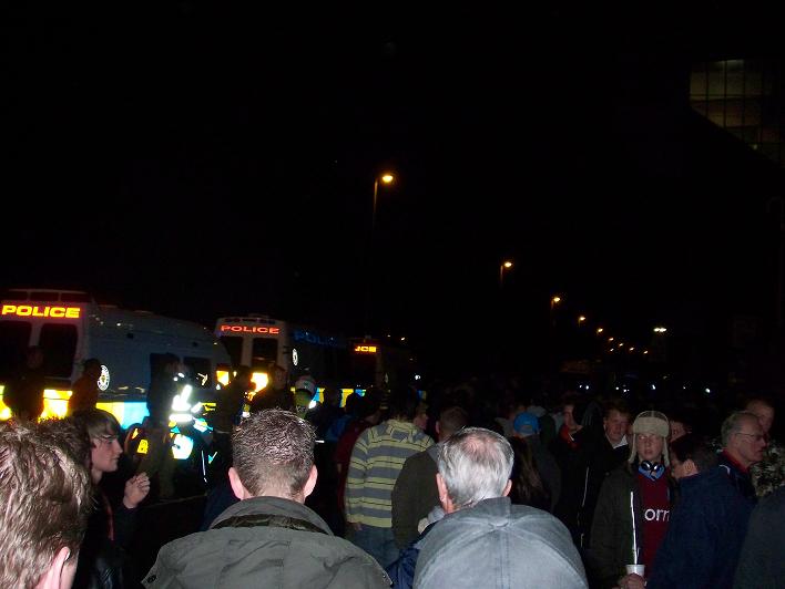 De een ging per auto en boot, de andere koos voor meer luxe door te gaan vliegen. Daarnaast vertrokken ook er ook een aantal bussen naar Engeland. Op de airport aangekomen, met de altijd beruchte BMI baby, stond de Amsterdamse politie de Ajax-supporters al op te wachten. Via een smerige lokroep werden supporters gelokt en konden zij even hun gegevens afgeven aan Old Bill. Zelfs in binnenstad van Birmingham waren agenten in restaurants opzoek naar nieuwe adresgegevens, bastards!
