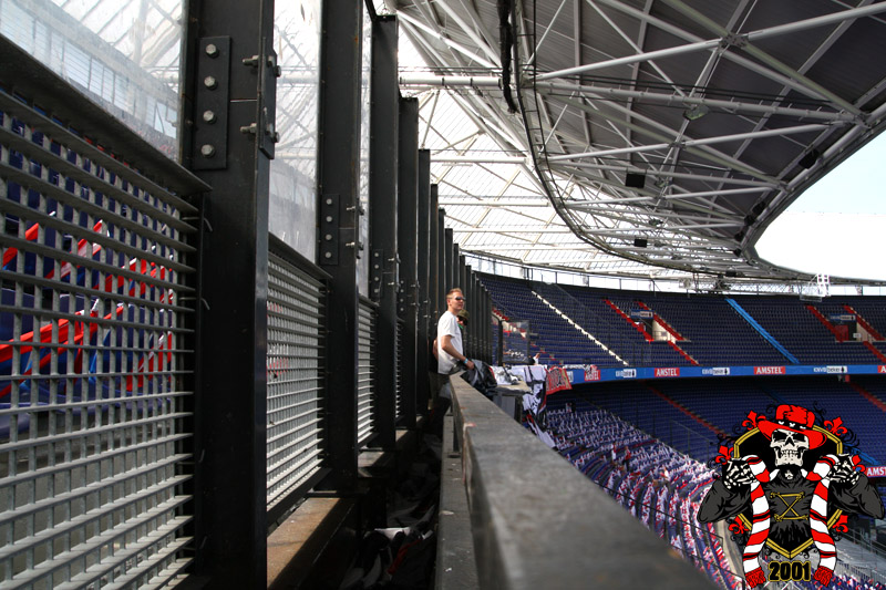 De zon had ook zijn plekje op de tribune veroverd, waardoor de tempratuur behoorlijk op liep. Vak Y2 is in de Kuip aan de Marathonzijde het mooiste vak. Recht achter de goal, dicht op het veld. De capaciteit van een kleine 600 man werd flink overschreden. Tientallen jongens klommen over hekken, sprongen over hekken of hadden aan een stormloopje genoeg.