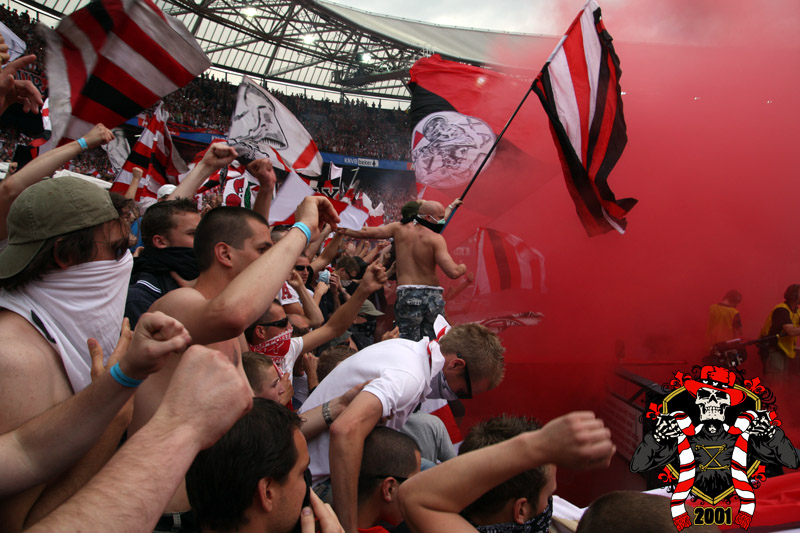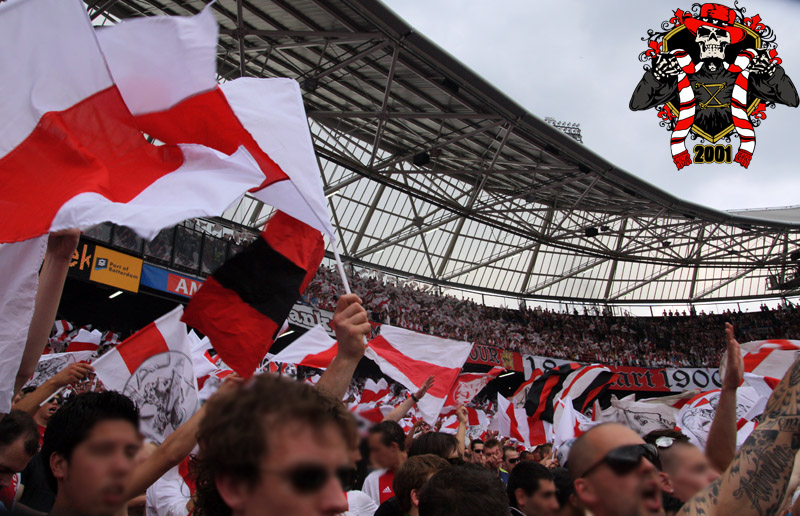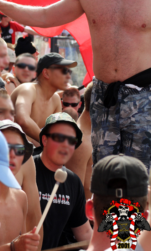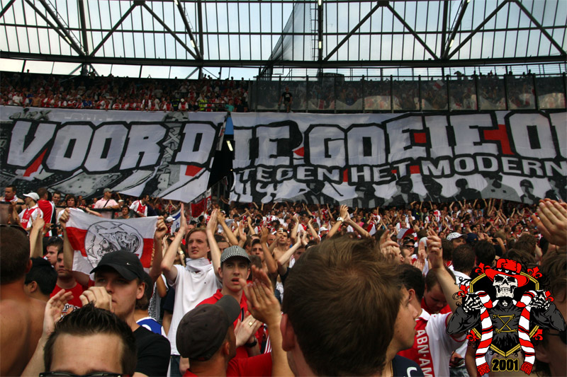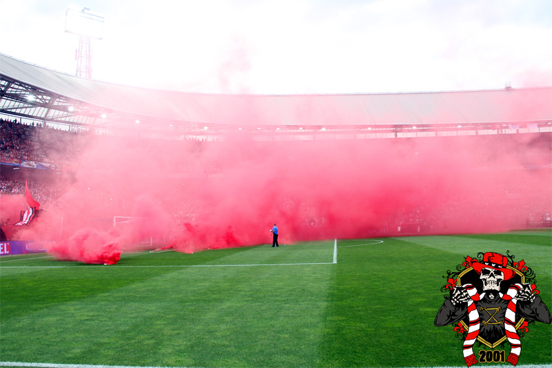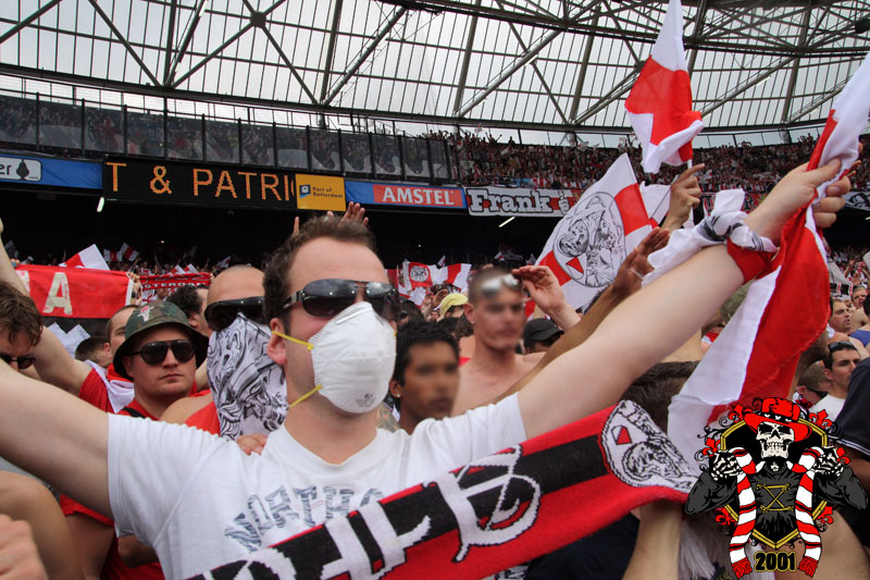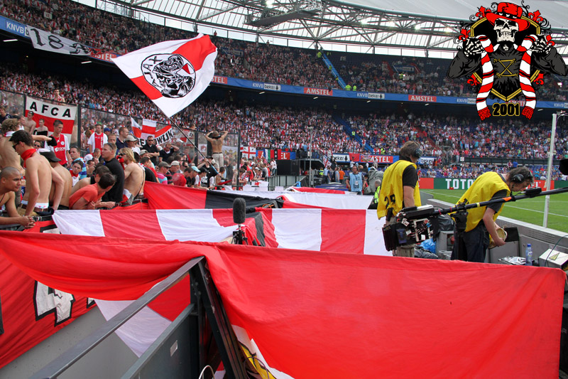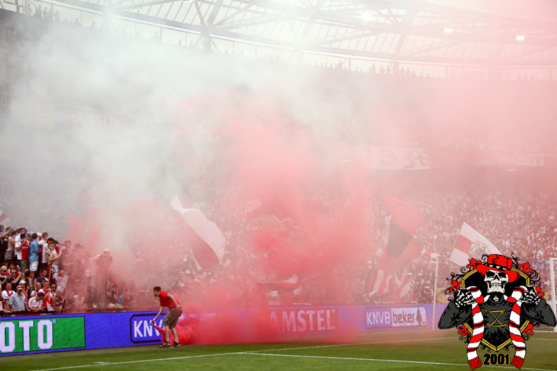 Wanneer de spelers om 17.55 uur het veld betraden veranderde het stadion in een groot gekkenhuis. Gezichten werden bedekt, mondkapjes kwamen tevoorschijn. Vlaggen, spandoeken, megadoeken, fakkels en rookpotten kleurde het stadion wit-rood-wit. Tientallen rookpotjes werden op het veld gegooid, wat voor een prachtige ambiance zorgde. De middenstip was niet meer te zien, zelfs handen waren voor de ogen niet meer te zien. De beker mag dan misschien niet zoveel voorstellen, maar een finale in de Kuip met 12.500 Ajacieden is machtig. Een ervaring die met geen pen te beschrijven is.