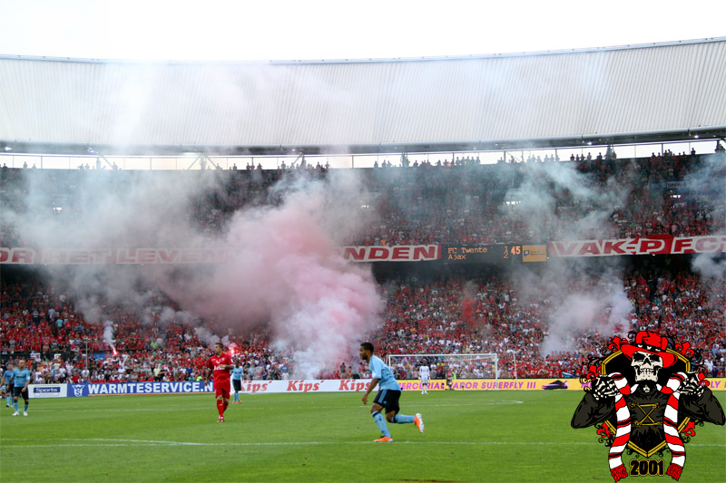 Wanneer de kruitdampen uit het stadion waren getrokken kon de wedstrijd beginnen. Ajax begon goed aan de wedstrijd en kwam 0-2 voor te staan. Op vocaal gebied kreeg Twente een tik en waren even niet te horen. Dat de 1-2 even voor rust viel, heeft Twente zowel op het veld als op de tribune hoop gegeven. In de rust kon iedereen even bij komen, even naar verse lucht happen, even de keel smeren.
