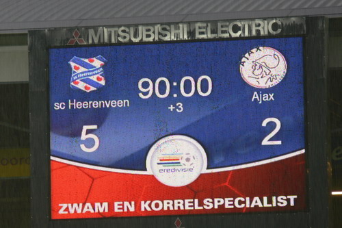 Ja, het staat er echt. Vijf voor Heerenveen, twee voor Ajax. 5-2. Pats boem, die klap komt nog harder aan als je goed naar de cijfers blijft kijken. Vaak zijn we goed weggekomen, kansen die werden domweg werden verprutst door tegenstanders of gewoon goed keeperswerk. Je bent net zo sterk als de zwakste schakel wordt er wel eens gezegd. Ajax is zondag niet overklast, nee vernederd. Zwaar gewezen op de eigen tekortkomingen. De bouw van de Noord-Zuid lijn loopt nog voorspoediger dan de bouw van een onverslaanbaar elftal van onze club. Het zat er misschien ook wel een keer aan te komen.