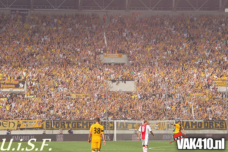 Wanneer er in de zomerstop het bericht komt dat Ajax is uitgenodigd op het 60 jarige bestaansfeestje van Dynamo Dresden, hebben wij al snel een bus vol voor deze trip. Een oefenmatch in Duitsland is altijd lekker. Ajax weigert aan ons kaarten te verkopen, zij menen dat Dynamo Dresden een geweldadige (racistische) reputatie heeft.