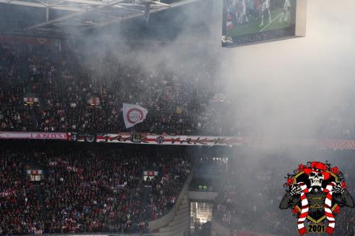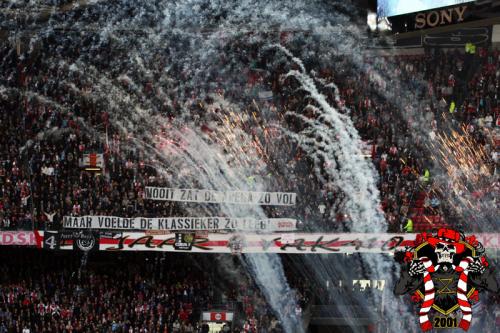 Jaarlijks vinden er rondom de Klassieker vaste rituelen plaats: bezoek aan de laatste training en de nacht ‘voor’. Dit jaar is op aangeven van Frank de Boer de laatste training besloten afgewerkt, dus dat ritueel ging niet door. Vroeg in de avond werd er door een groep bij het honk verzameld, van alle kanten wordt er drank en eten aangereikt. Aangezien de tempraturen ’s nachts weer tegen het vriespunt liggen wordt er een vuurtje opgestookt. De smeris komt ook nog even kijken, 8 busjes sterk. Als gauw zagen ze dat het om een groep Ajax ging, in tegenstelling tot hun eerdere gedachte naar een groep van de andere club.